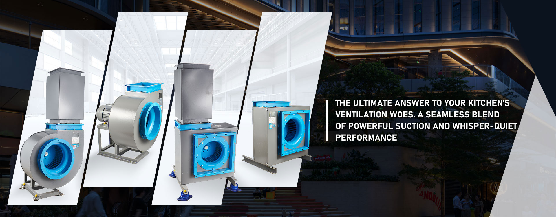 The HFJZ-A craftsman kitchen fan is a square-housed ultra-quiet multi-blade centrifugal fan specially designed for kitchen exhaust. It was engineered to meet the demand for low-noise kitchen fans in modern kitchens and the exhaust requirements of communal ductwork. Compared to conventional multi-blade fans, it offers advantages such as higher pressure and lower noise levels. Moreover, it features a high static pressure design to tackle long ductwork and high resistance typical of modern kitchen setups. The fan features a double-layer volute casing design, with the inner volute constructed from welded perforated plates. A 3cm-thick layer of high-temperature-resistant sound-absorbing cotton fills the space between the inner and outer casings, effectively eliminating noise generated by gas flow. Both inlet and outlet can be optionally equipped with crafted silencers, boasting an exquisite appearance. Perfectly suited for kitchen air supply in public venues such as canteens, hotels, restaurants, and other public establishments.